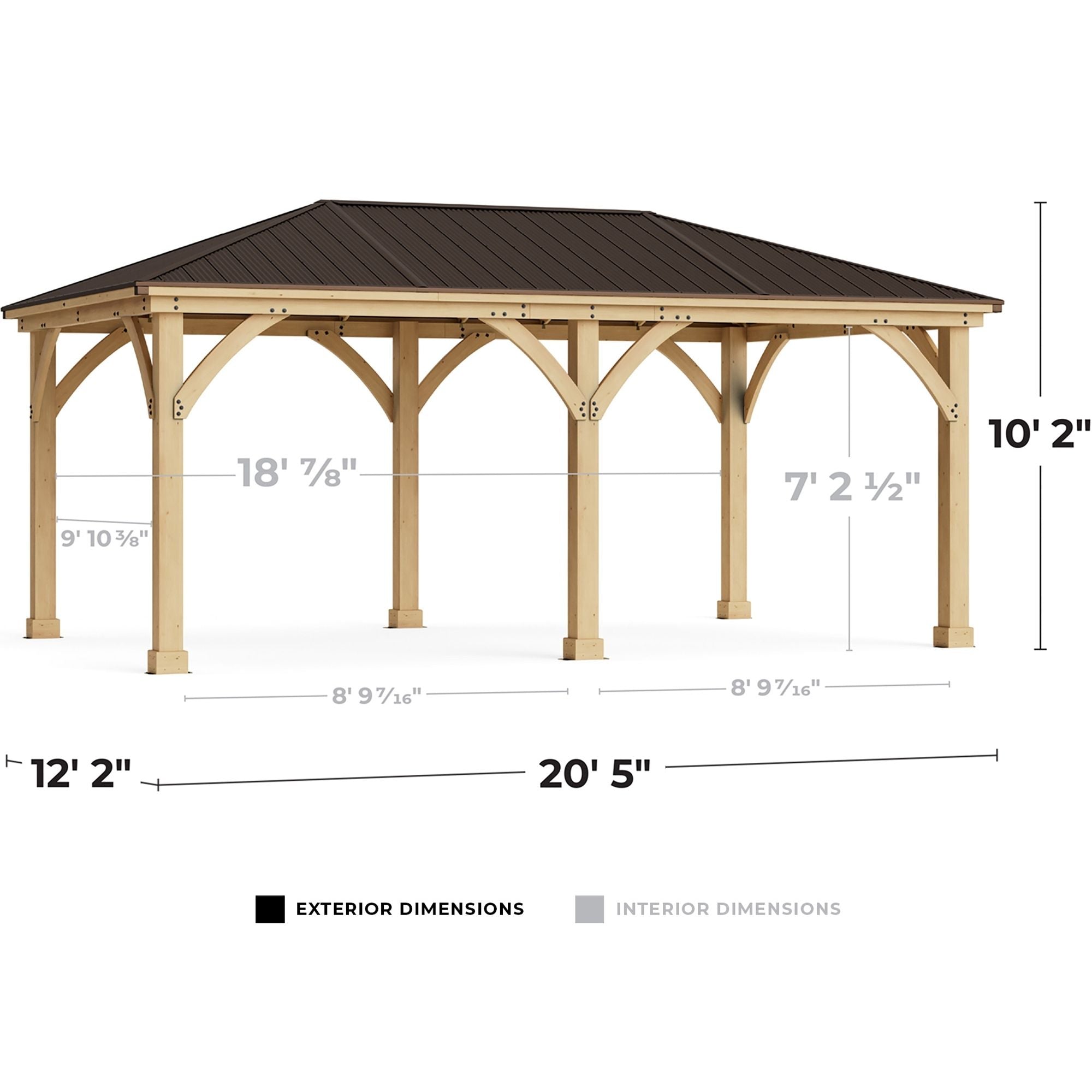 12’ x 20’ Meridian Gazebo (SKU: YM11775)The 12’ x 20’ Meridian Gazebo is a sophisticated and beautiful escape that will add a stylish and modern look to your outdoor living space! The spacious 12’ x 20’ Meridian Gazebo is big enough to set up both a dining - and living space. Strong and sturdy construction means the Gazebo can be attached to any structurally safe surface. The wood comes pre-cut and pre-drilled, so all parts easily fit together. Your new Gazebo is designed for stress-free assembly! Follow the illustrated step-by-step instruction manual or watch the Helpful Hints assembly video on YardistryStructures.com.