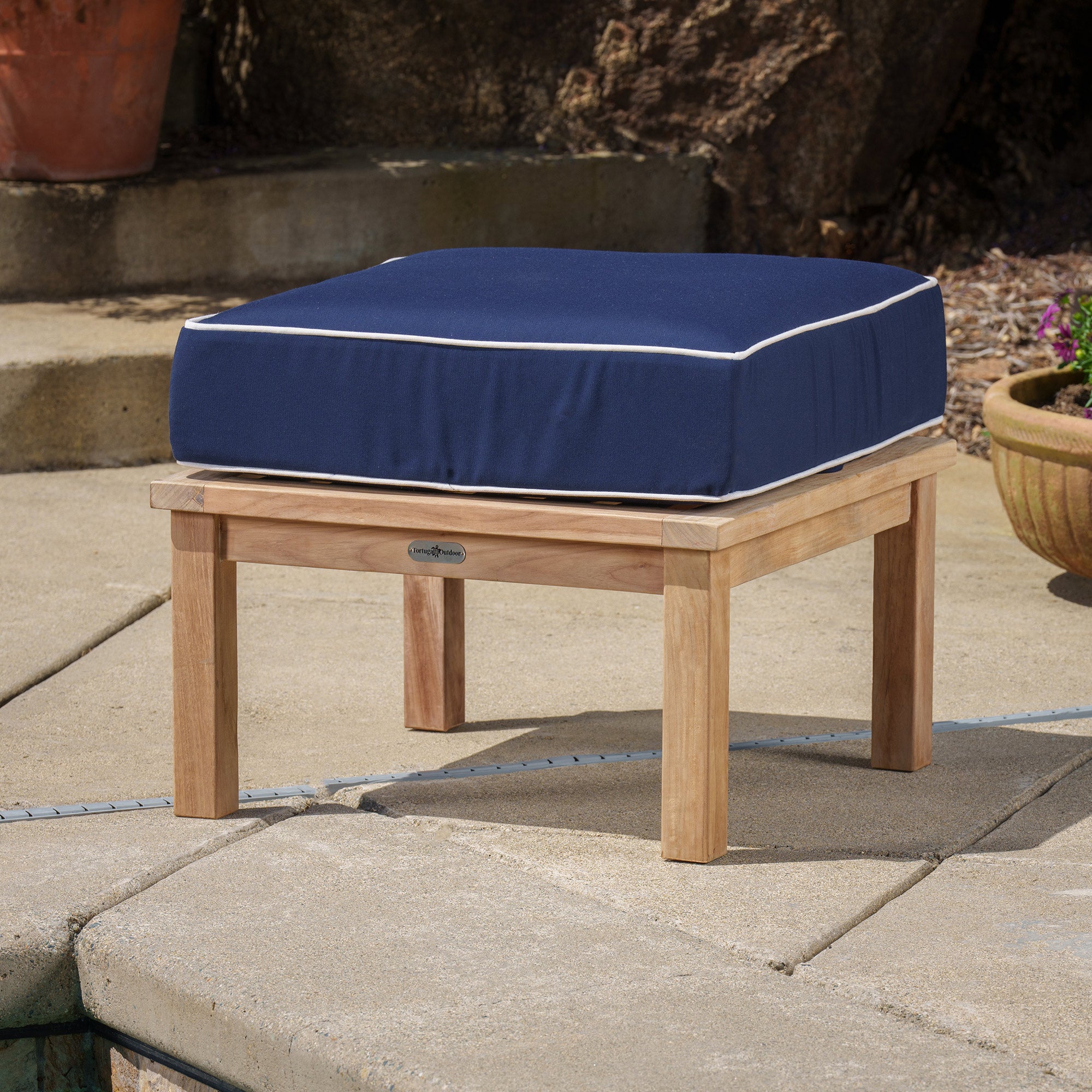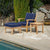 Create a cozy corner in your outdoor space with our stunning three-piece Indonesian Teak set. This set includes a comfortable club chair, a practical square side table, and a versatile ottoman, all crafted from the highest quality teak wood for unmatched durability and longevity. The brass hardware on this set adds a touch of sophistication and elegance, while the Navy Sunbrella cushions with Canvas colored piping provide a comfortable and stylish seating option. The cushions are made from premium-quality Sunbrella fabric, making them resistant to fading and water damage, ensuring your furniture remains beautiful and comfortable for years to come. This three-piece set is perfect for creating an intimate seating arrangement in your outdoor living space. Enjoy a cup of tea, relax with a book or spend some quality time with friends and family in this cozy corner. This Indonesian Teak set is designed to last and withstand the test of time while providing you with a comfortable and stylish outdoor living experience. So, what are you waiting for? Add this beautiful three-piece set to your outdoor space and transform it into your very own haven.Assembly Information