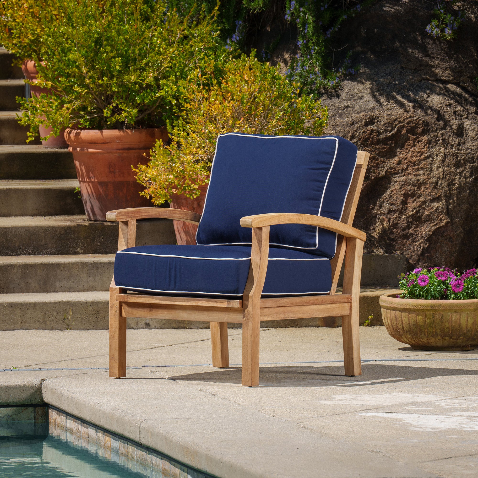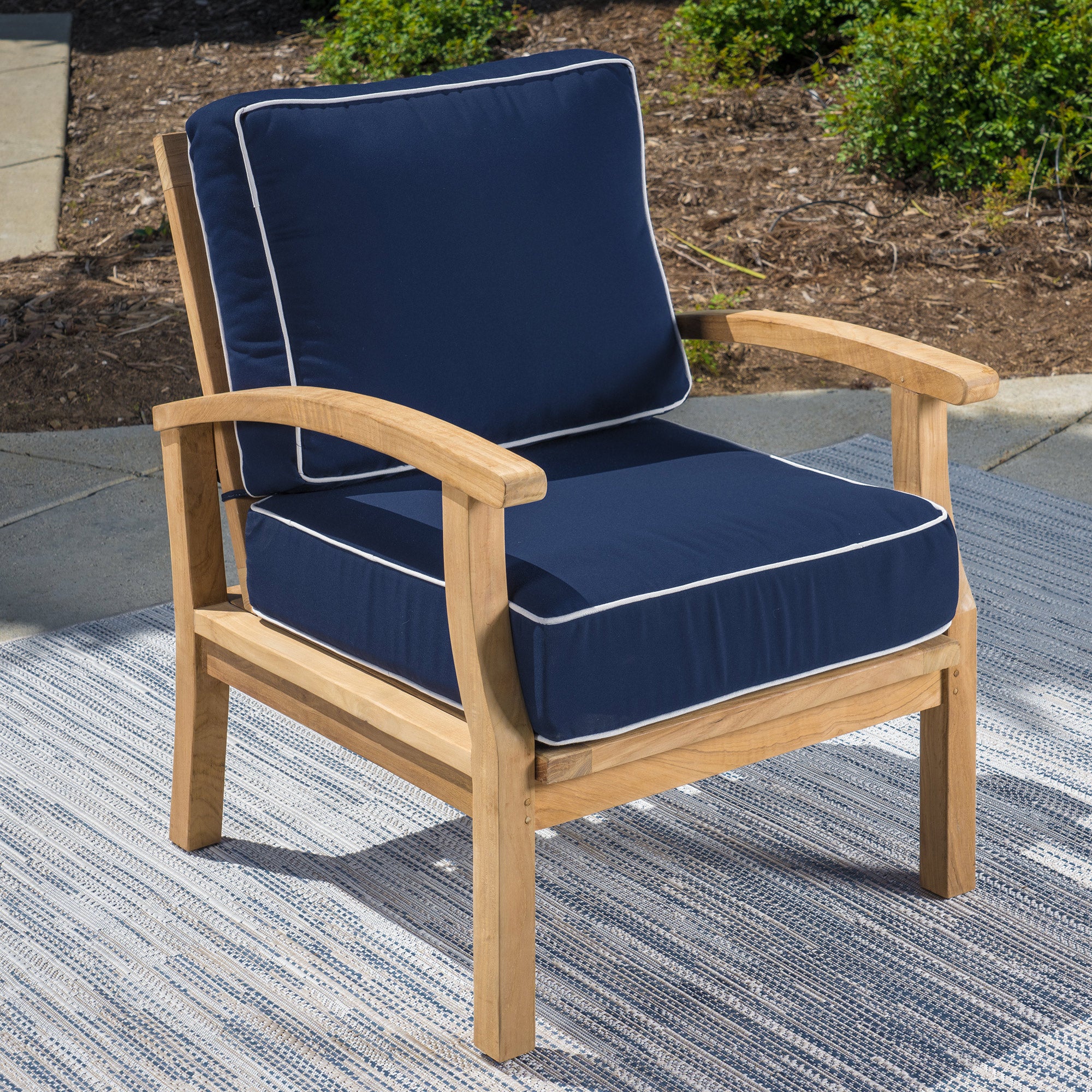3pc Indonesian Teak Club Chair Set, Sunbrella Navy (With Ottoman & Side Table)