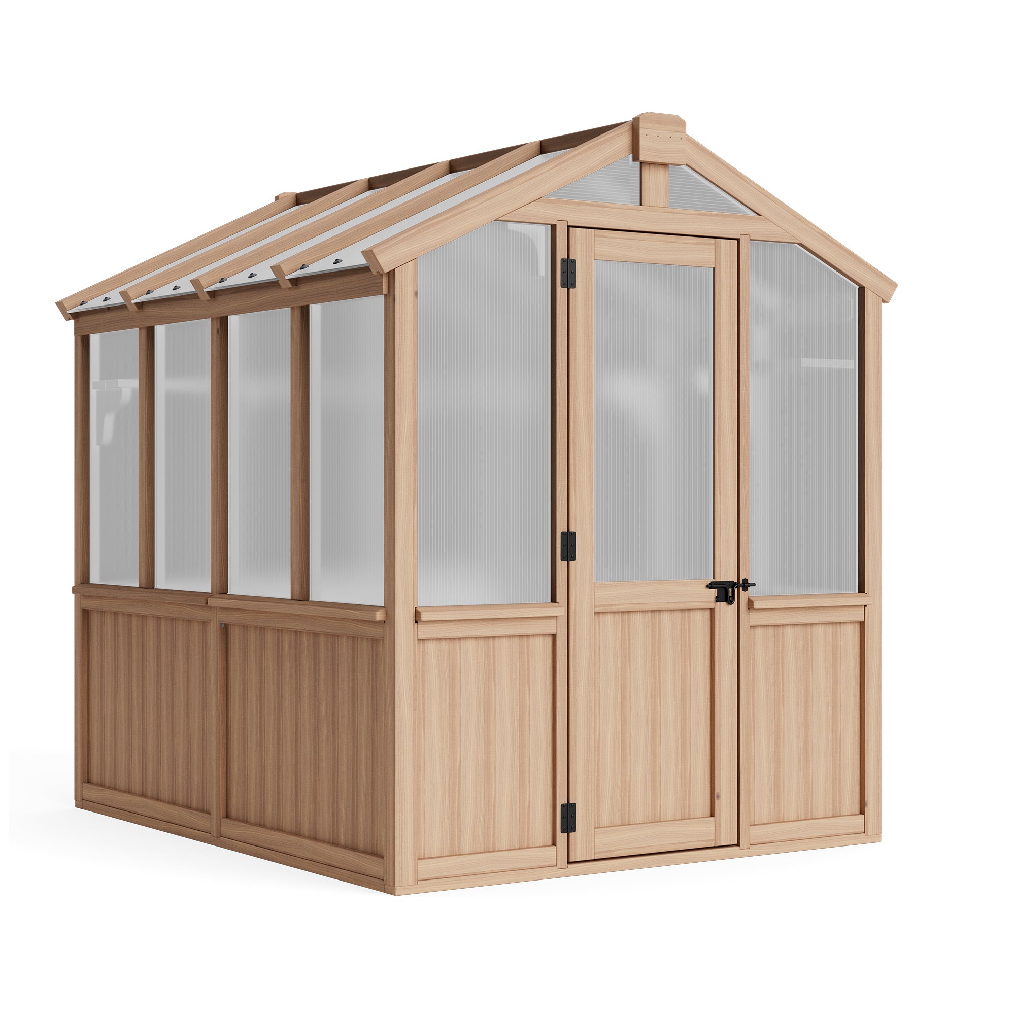 If you're staining a greenhouse, be sure to apply painter's tape around the polycarbonate panels on the door and vent panel to protect them during the staining process.